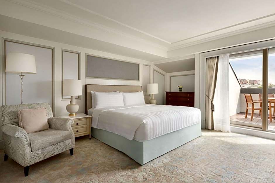 Offer the space and fine amenities for a relaxing stay. The décor features soft blue accents that evoke the waters of the Bosphorus Strait. Most rooms have a French Balcony overlooking the inner atrium of the Hotel and are the largest introductory category rooms in the city (60 sqm or 638 sqft). It has a large marble bathroom with a separate shower and bath tub. Deluxe Rooms are located on levels 1 through 5.